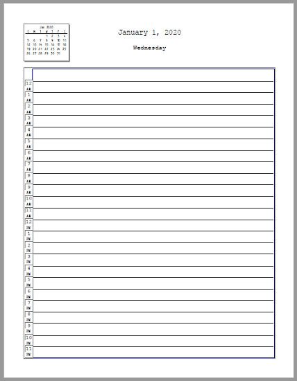 7 Days Week 24 Hour Schedule Ms Word Template – Example Calendar Printable