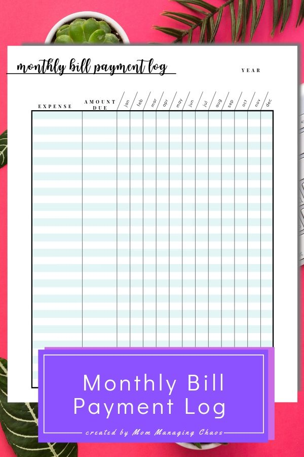 bill monthly payment log printable pay checklist bills budget organizer pdf record money paying chart calendar spreadsheet