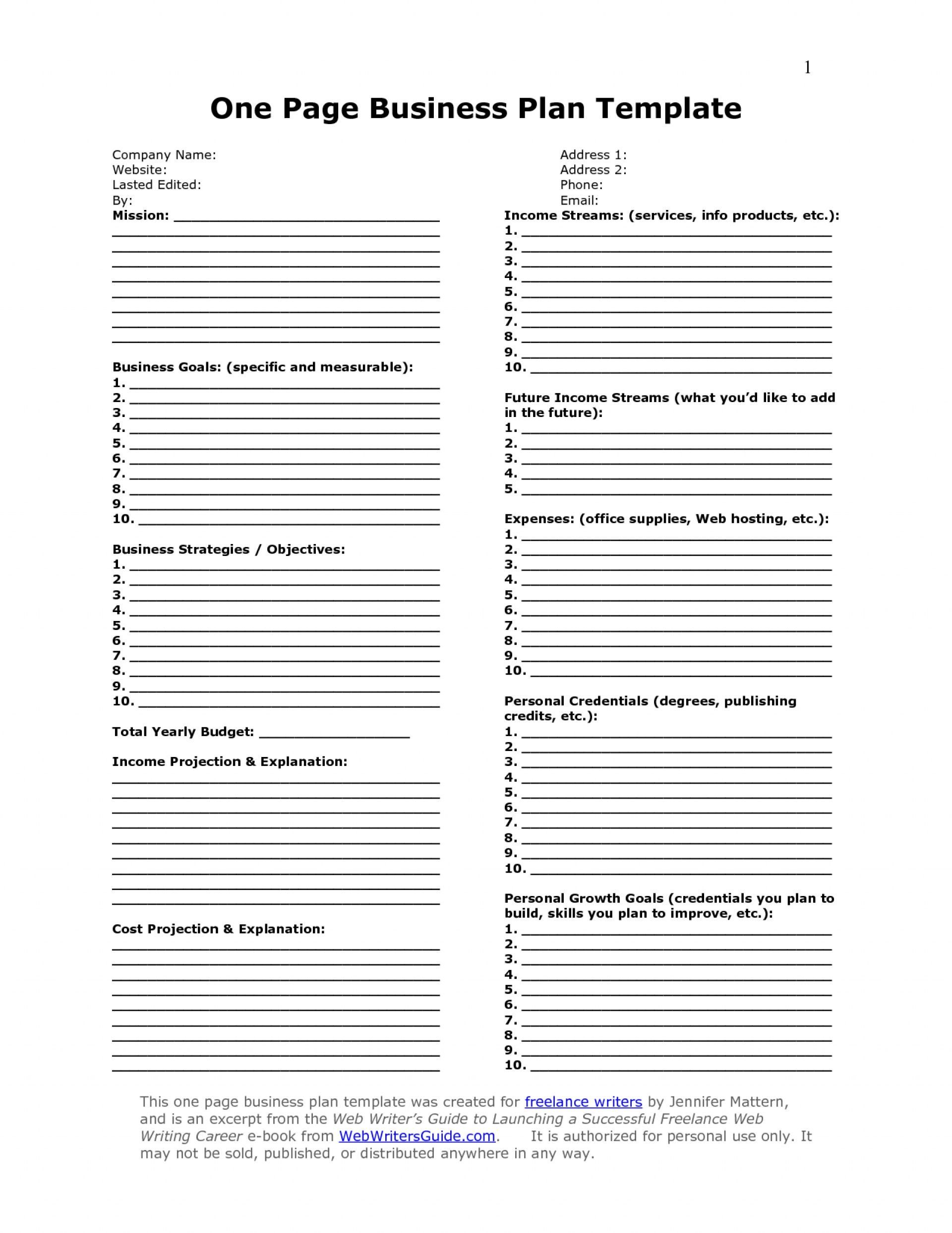 Business Plan Template Free Pdf | One Page Business Plan, Business Plan