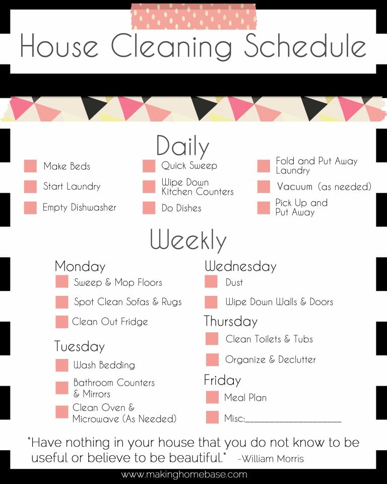 cleaning schedule weekly printable clean house checklist easy mom daily monthly template household tasks routine super organized pretty calendar keep