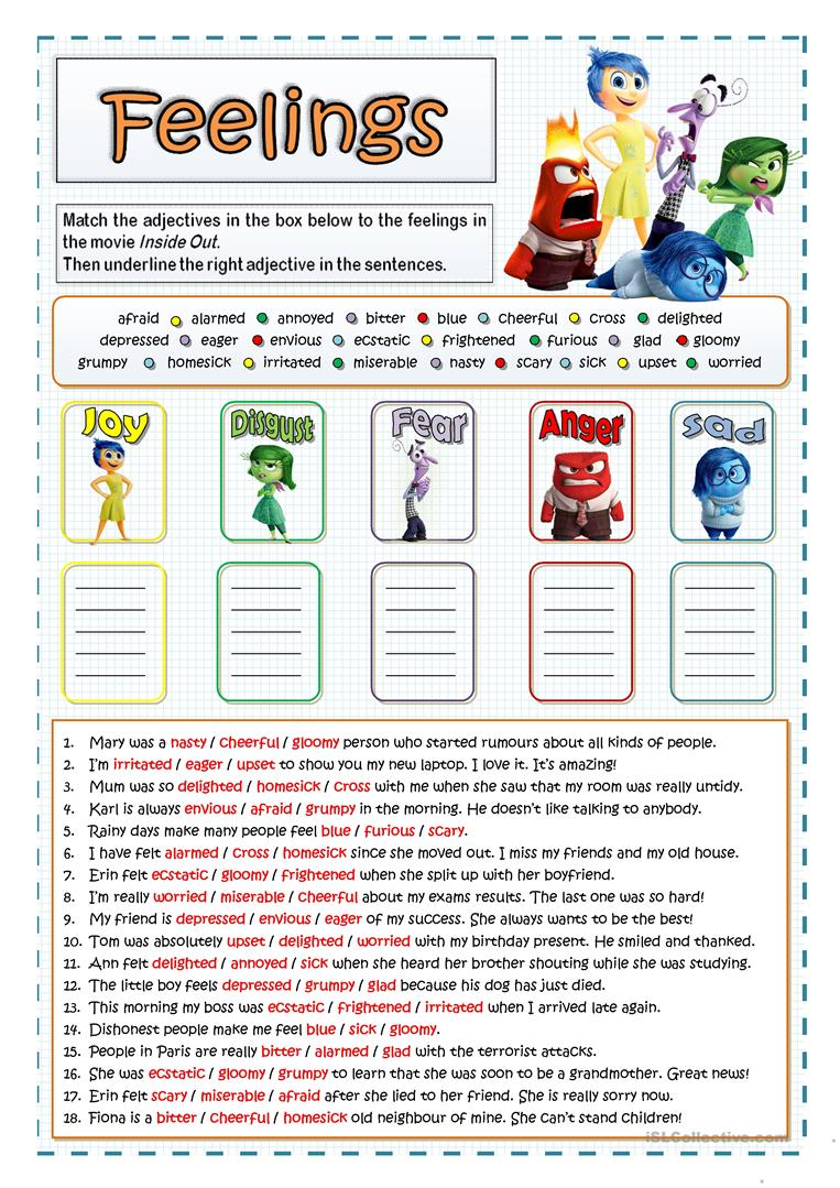 INSIDE OUT – FEELINGS AND EMOTIONS Worksheet – Free ESL Printable