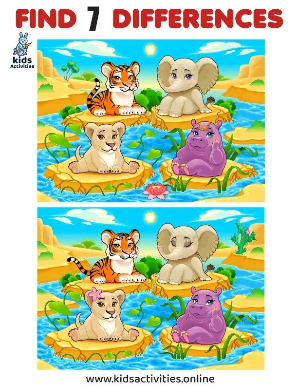 Activities For Kids Printable. Find The Differences Animals 60 | Dots