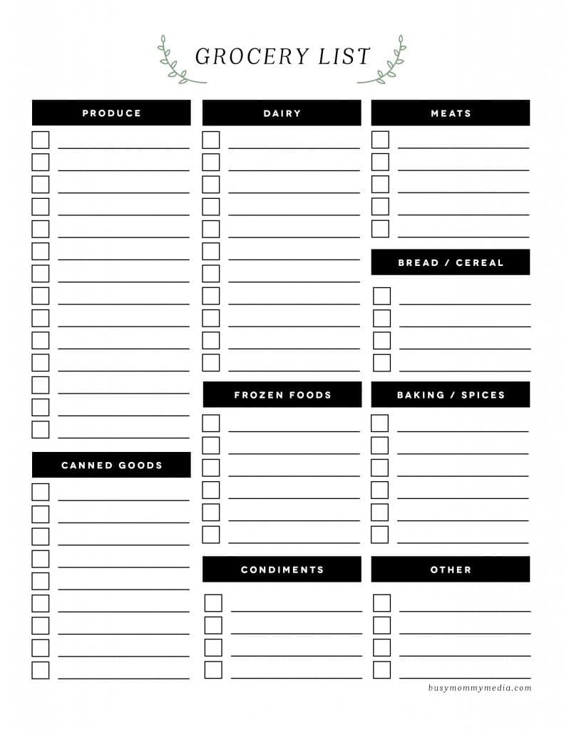 grocery list printable template simple check templates off sections printables separate boxes lovely mark features go