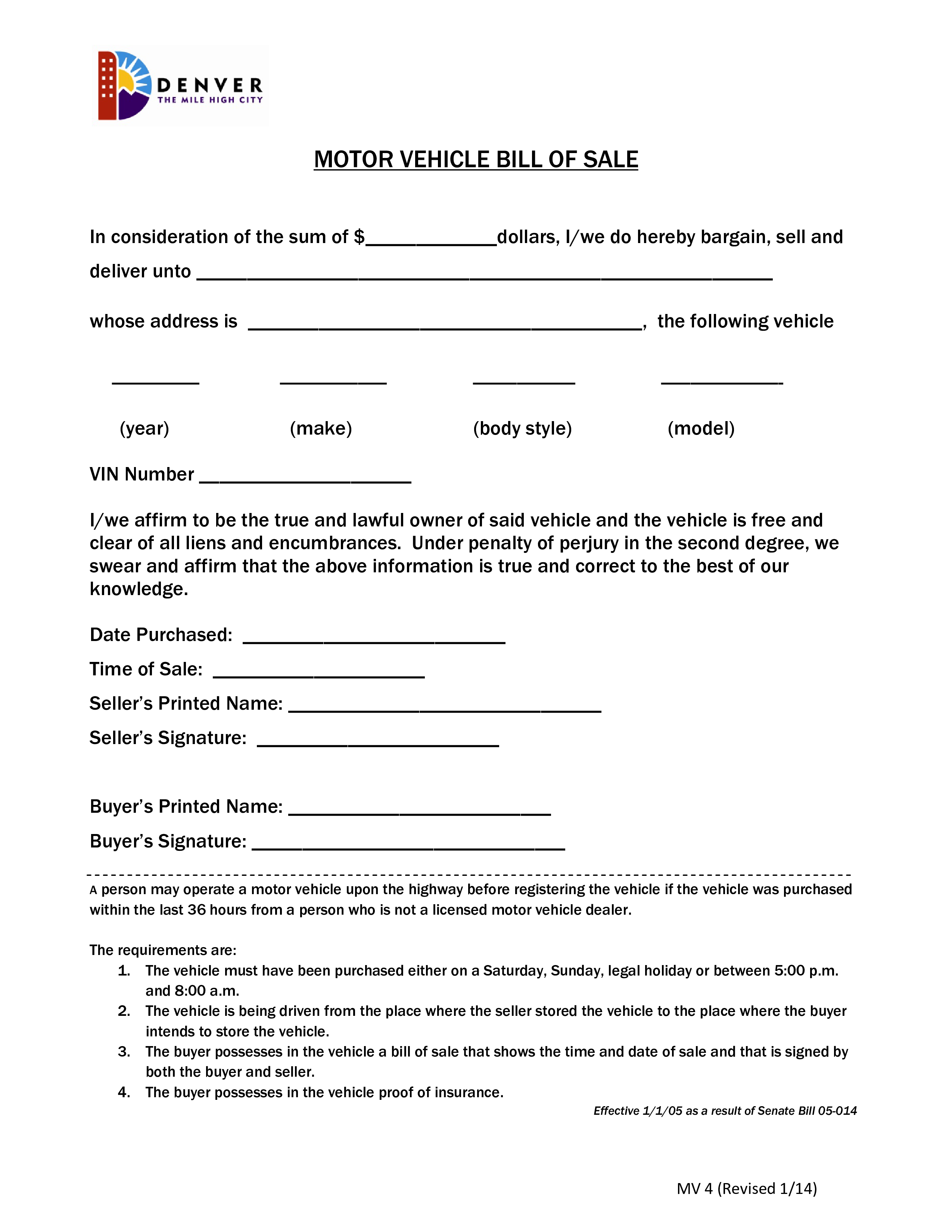 Bill Of Sale Motor Vehicle | Templates at allbusinesstemplates.com
