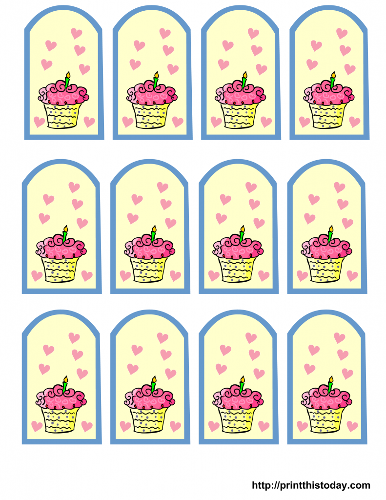 Birthday Cupcakes And Hearts | Free Printable Birthday Favor Tags