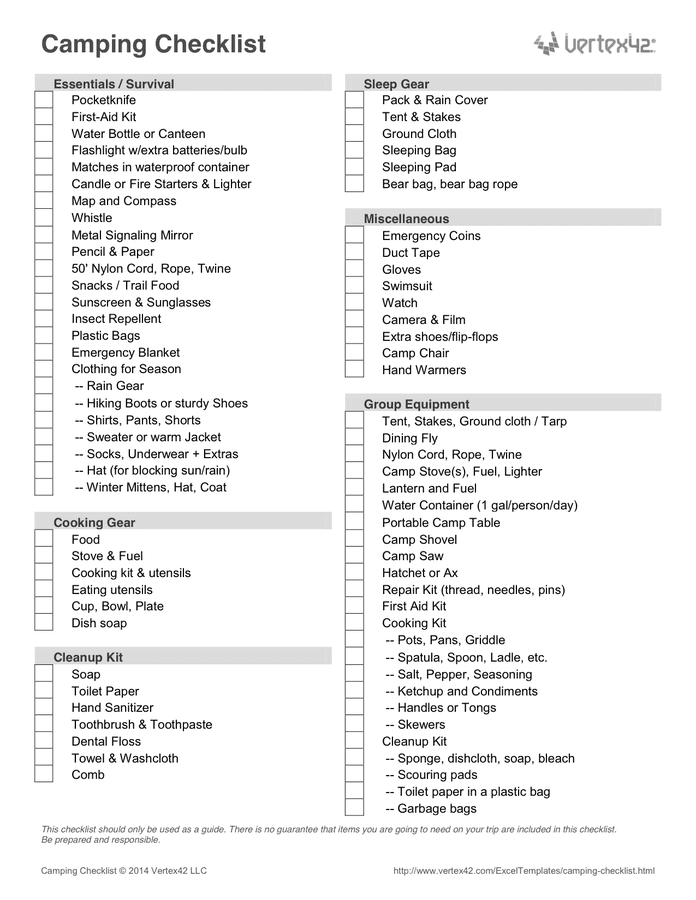 Get Our Image of Camping Checklist Template | Checklist template