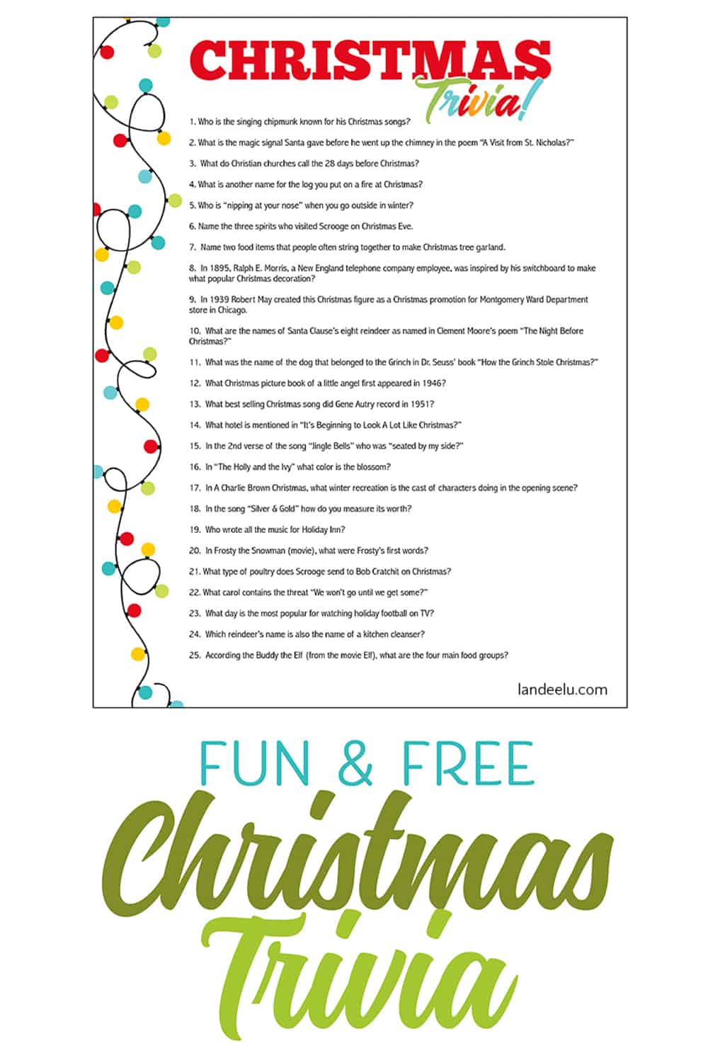 Easily Download And Print Out Copies Of This Fun Christmas Trivia Game