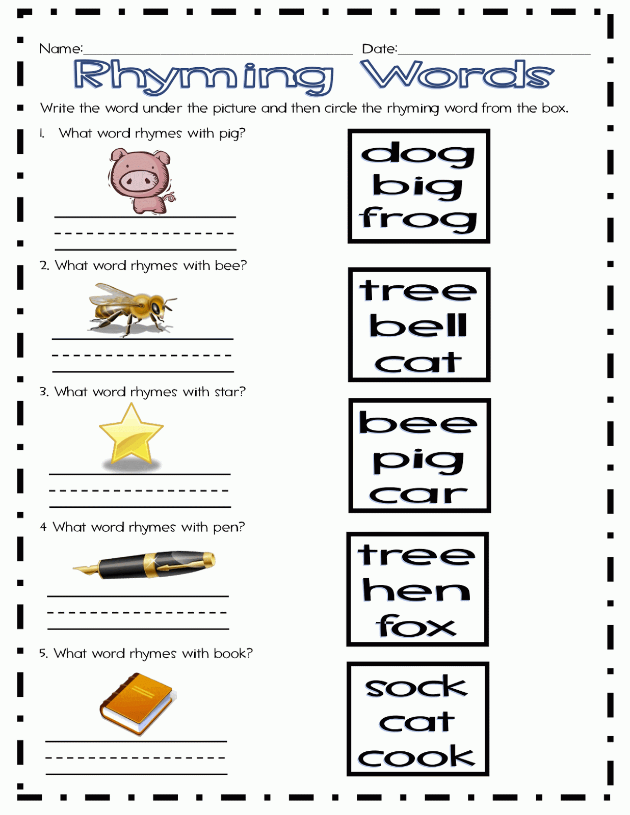 Rhyming Words Worksheet – Free Kindergarten English Worksheet For Kids