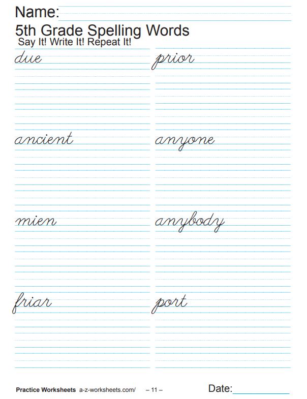 grade worksheets spelling 5th fifth printable writing practice printables words kids graders worksheet cursive collection digital handwriting sharpen scope jumpstart