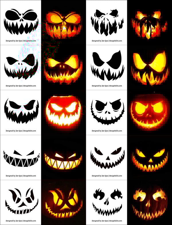 pumpkin carving stencils patterns scary halloween printable templates faces designs stencil spooky designbolts monster outline collection