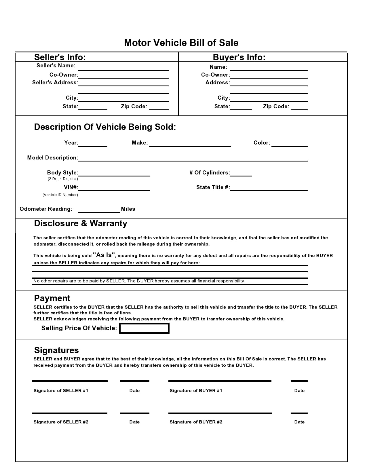 Free Motorcycle Bill of Sale Form | PDF | Word (.doc)