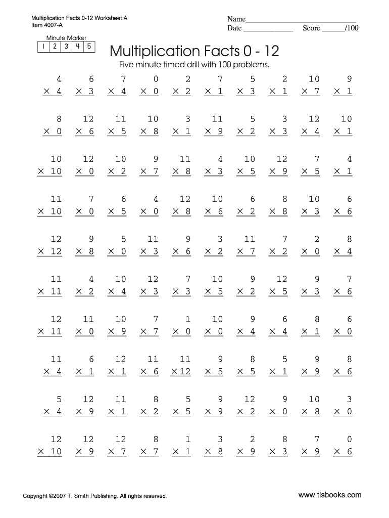 Multiplication Worksheets Times Tables Speed Test Printable For Times