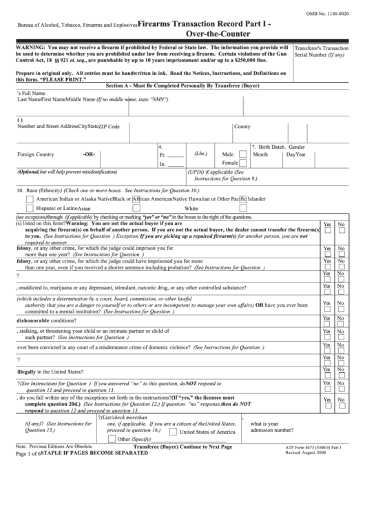 Atf Form 4473 – Firearms Transaction Record Part I – Over-The-Counter