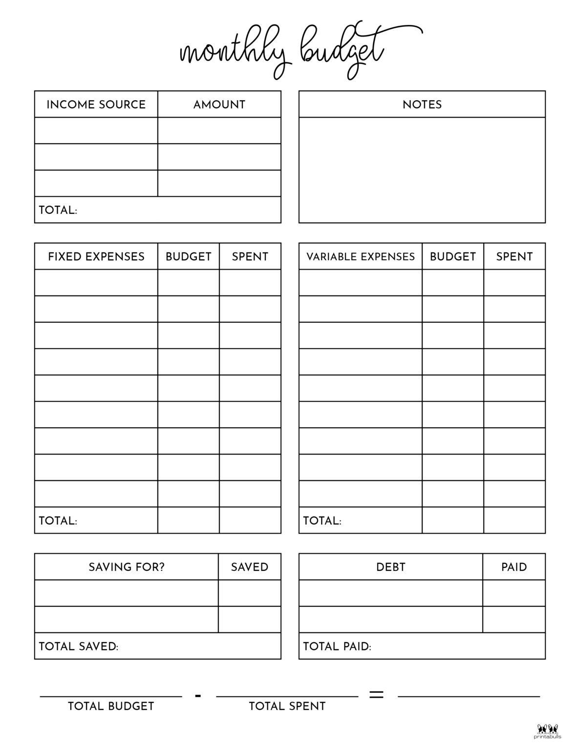 Monthly Budget Finance Template Printable Monthly Finance - Etsy