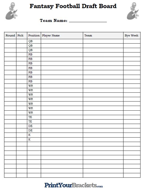 Printable Fantasy Football Draft Sheet – Customize And Print