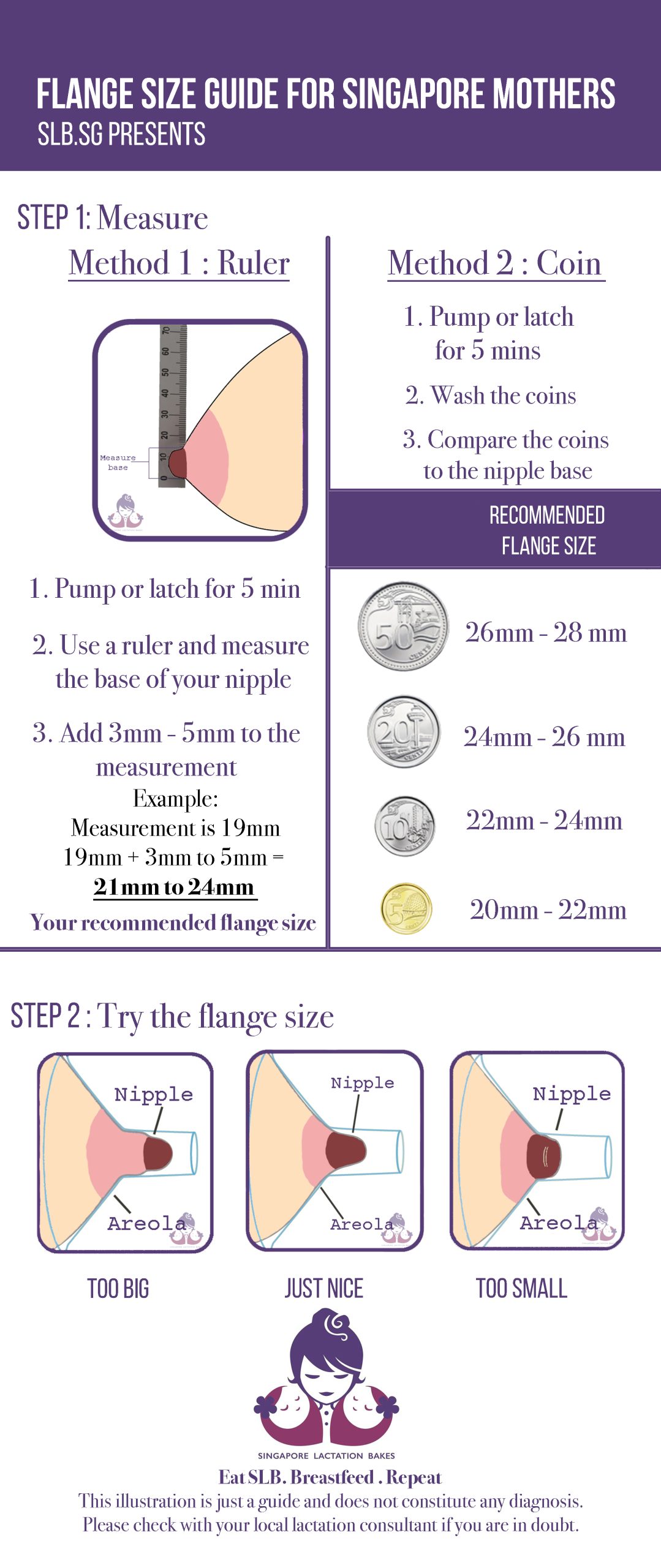 size breast flange shield breastfeeding measure guide pump slb pumping lactation singapore chart sg feeding mothers bakes tip baby tag