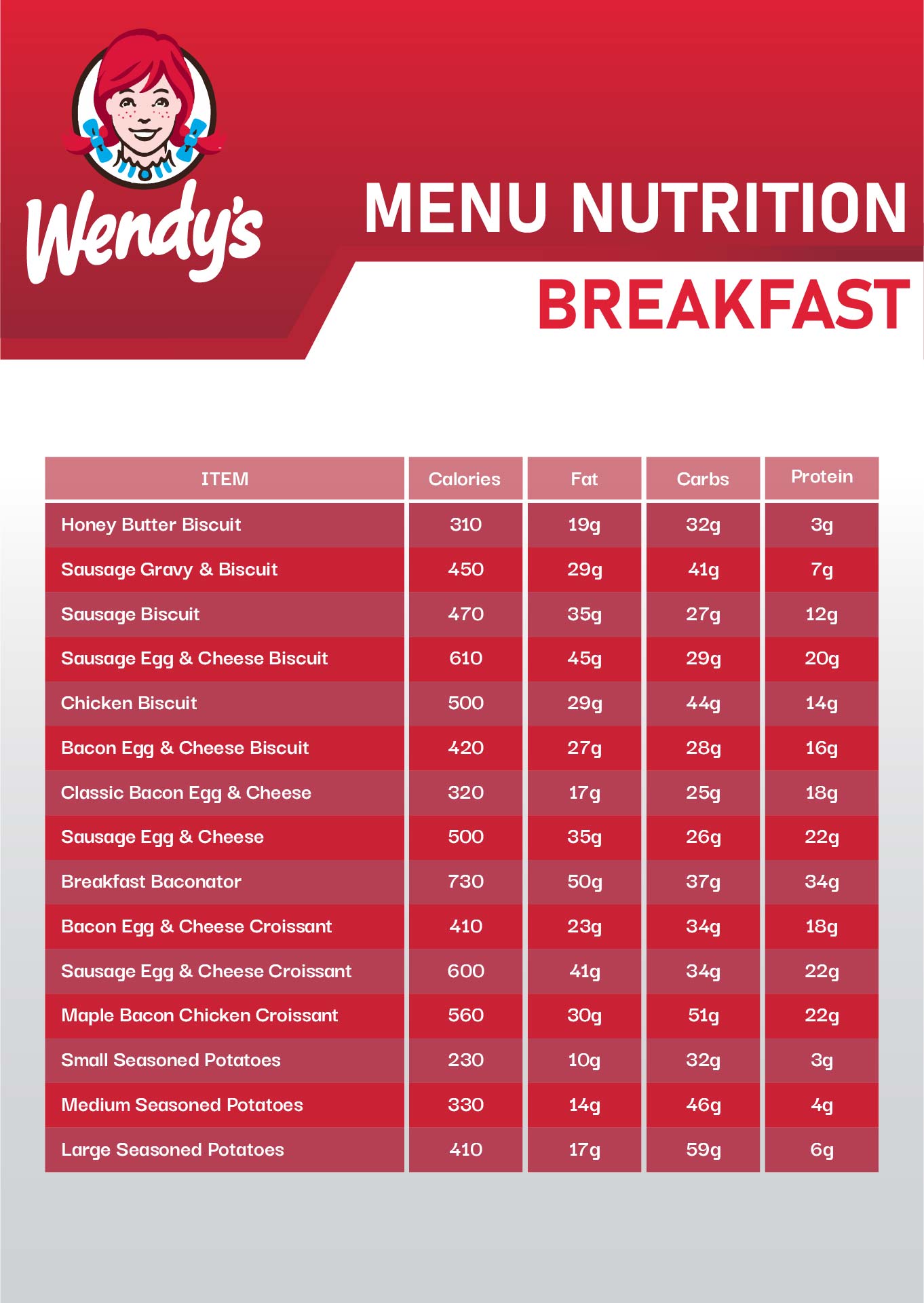 10 Best Wendy's Printable Food Calorie Chart PDF for Free at Printablee