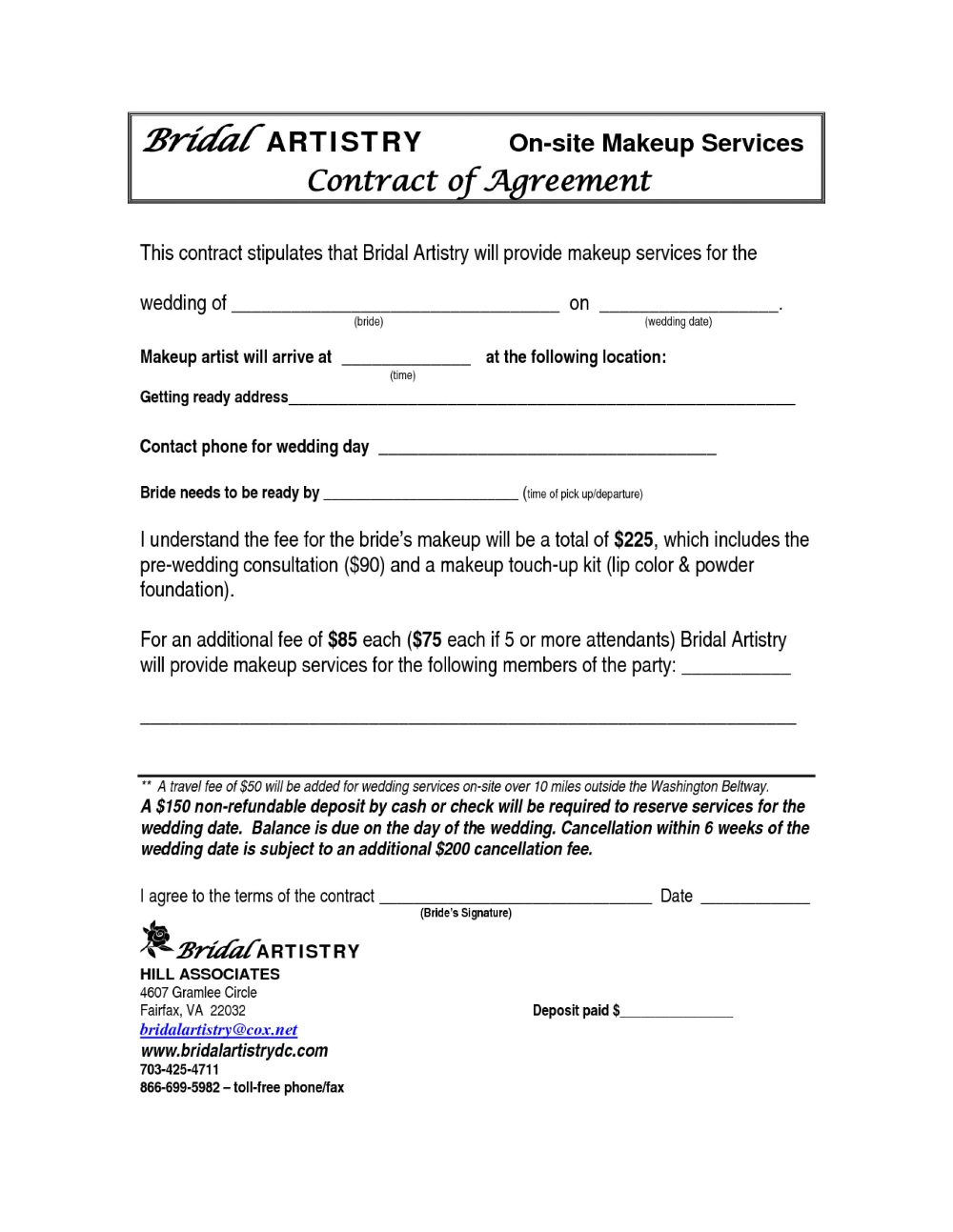 Makeup Artist Bridal Contract Template | Makeupview.co