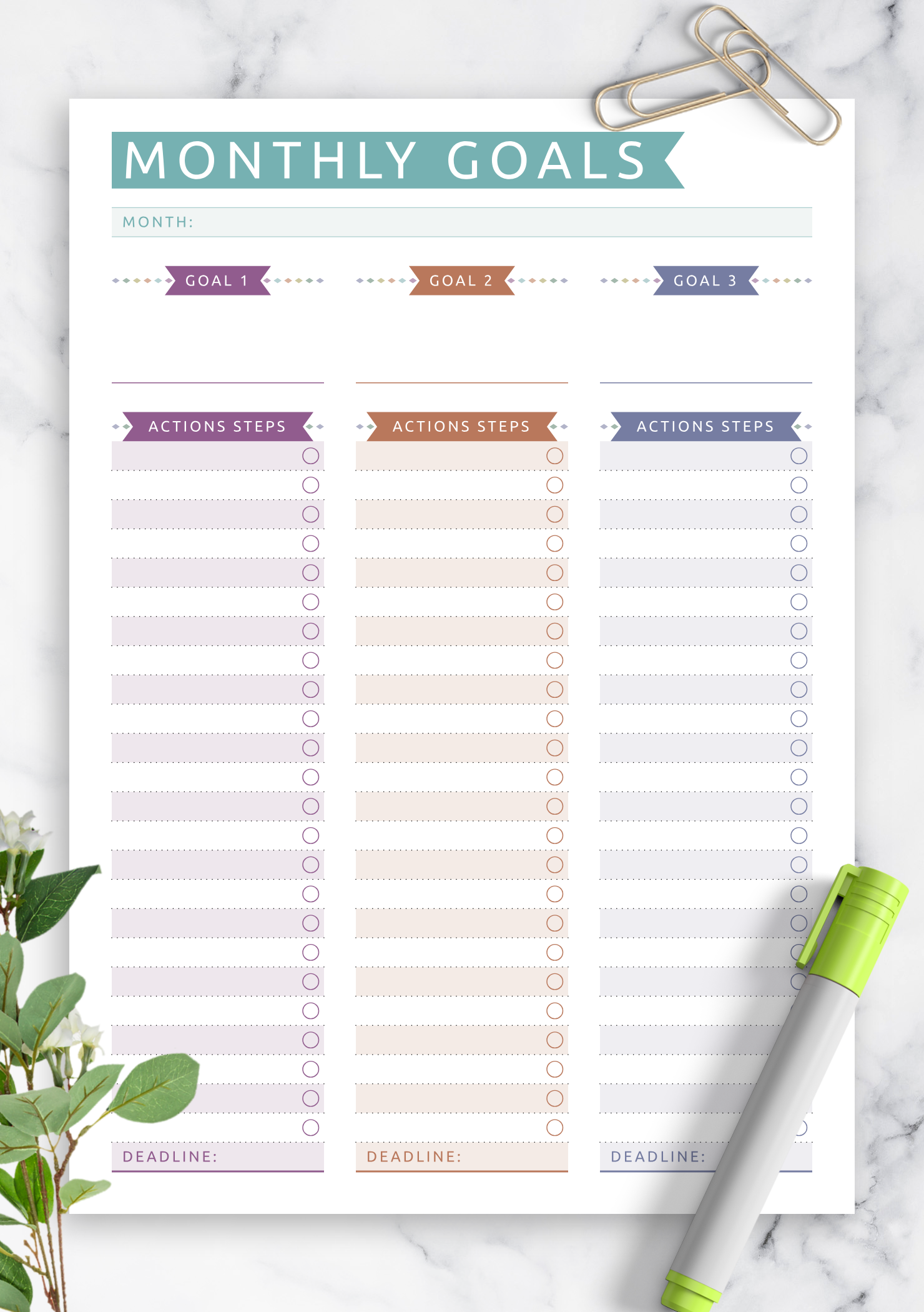 monthly goals planner blank template printable monarch weekly daily pages letter simple size pdf journal life choose board