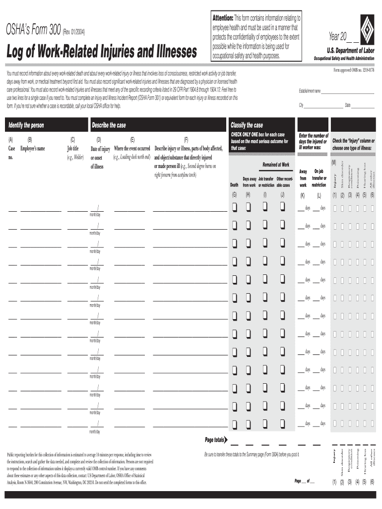 25 Printable Osha Form 300 Templates – Fillable Samples In PDF, Word To