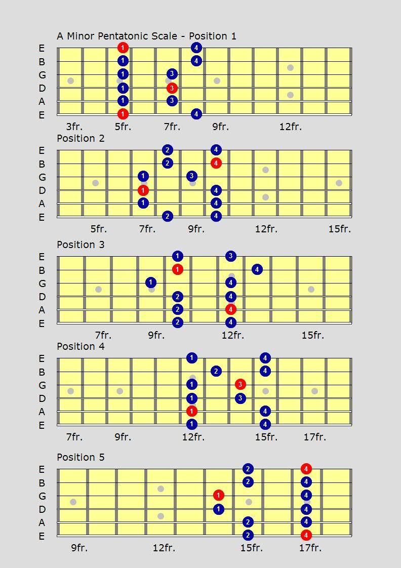 pentatonic guitar scale scales minor positions notes charts fretboard am music chords chart guitarra lessons degrees diagram bass modes theory