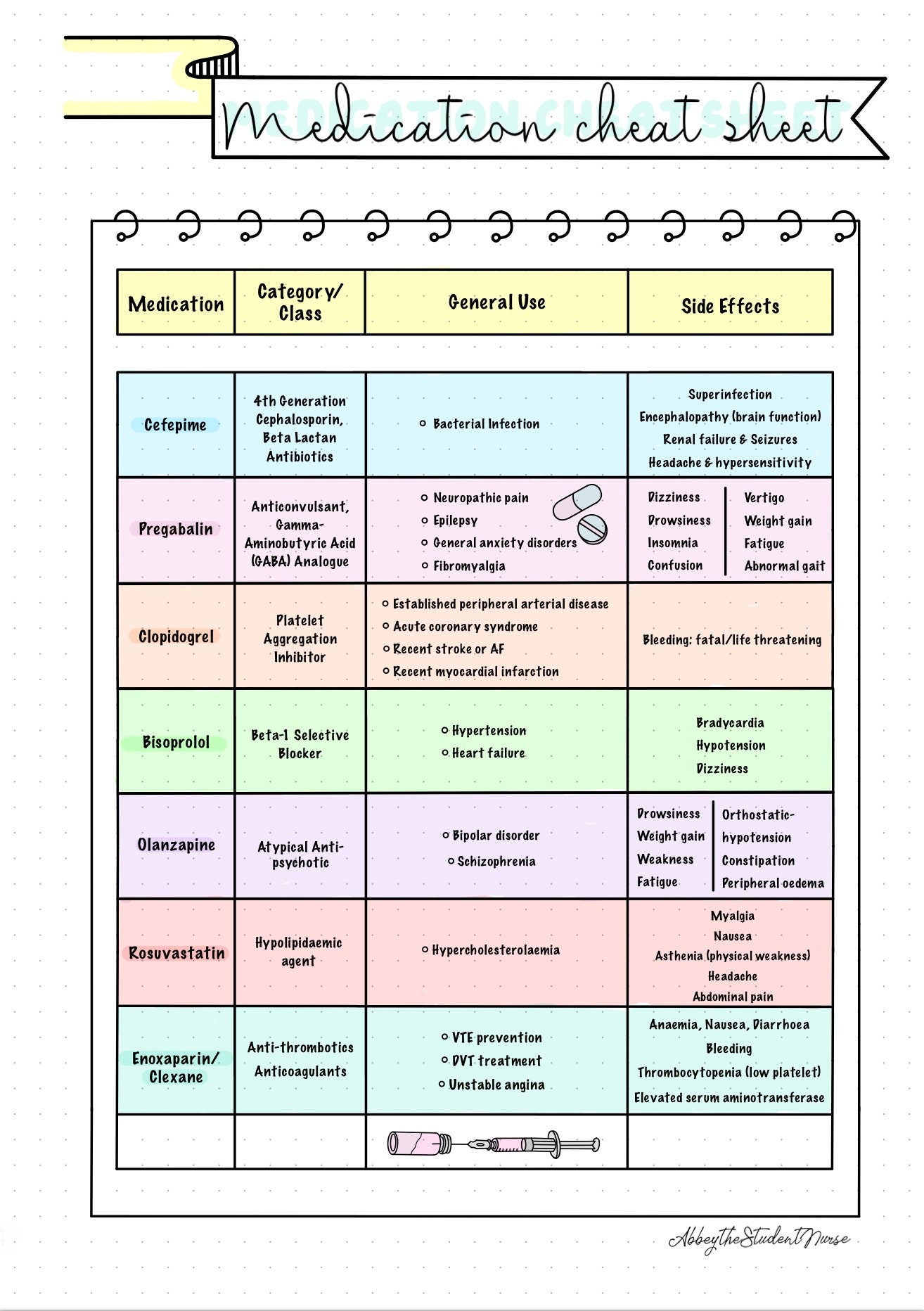 Printable Nursing Pharmacology Cheat Sheet – Printable World Holiday