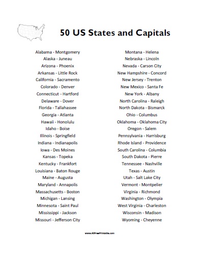 Free List Of States And Capitals Printable – PRINTABLE TEMPLATES