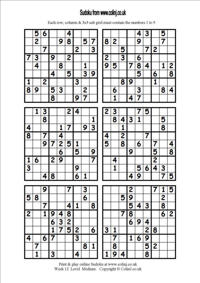 Sudoku Printables 6 Per Page – Martin Printable Calendars