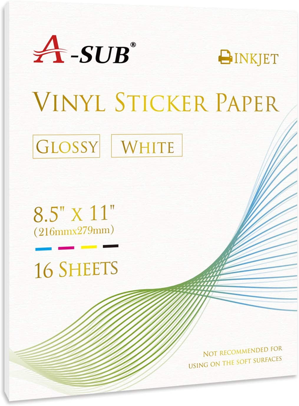 A-SUB Printable Vinyl Sticker Paper For Inkjet Printer, Glossy White 16