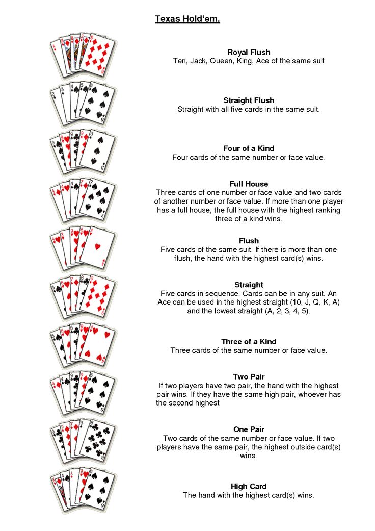 Texas Holdem Rules Cheat Sheet / Poker Hand Rankings Best Texas Hold Em