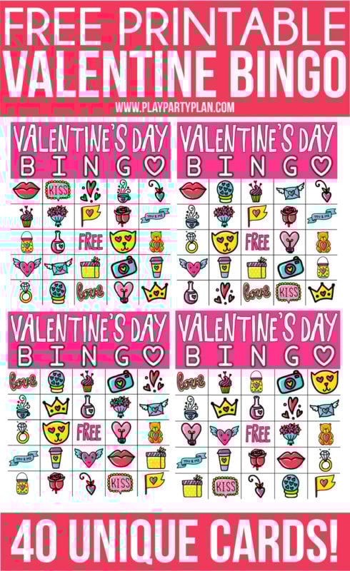 Free Printable Valentines Bingo Game (40 Cards!) – Play Party Plan