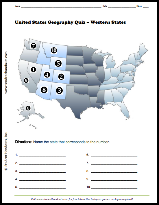 Western States Worksheets | 99Worksheets